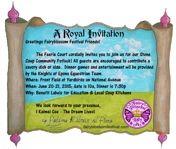 - Stone Soup (Fairyblossom Festival) Join their majesties High Queen Oonah and High King Finvarra for our potluck and Cooking Competition.